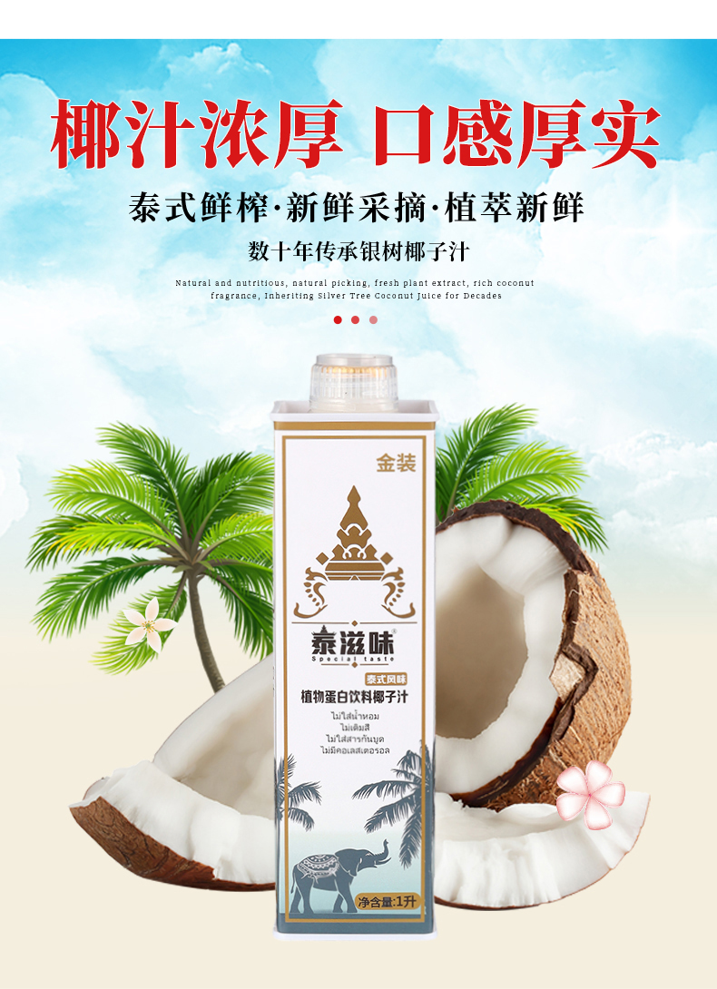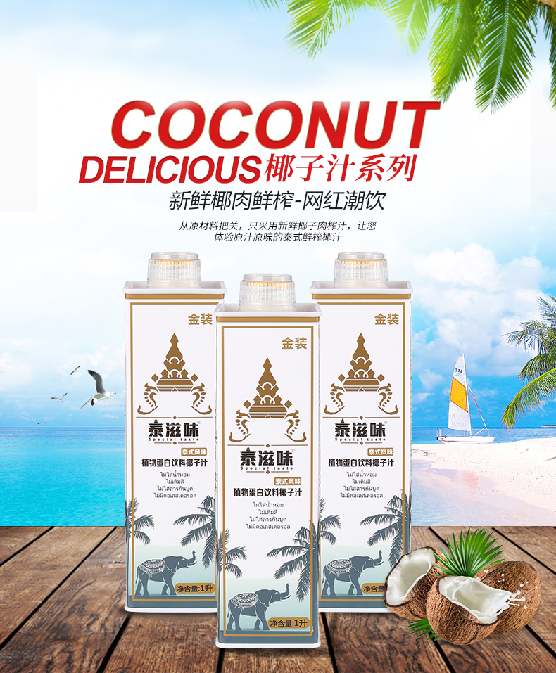 1L泰式鲜榨椰子汁泰国风味网红大瓶饮料整箱植物蛋白饮料代理合作