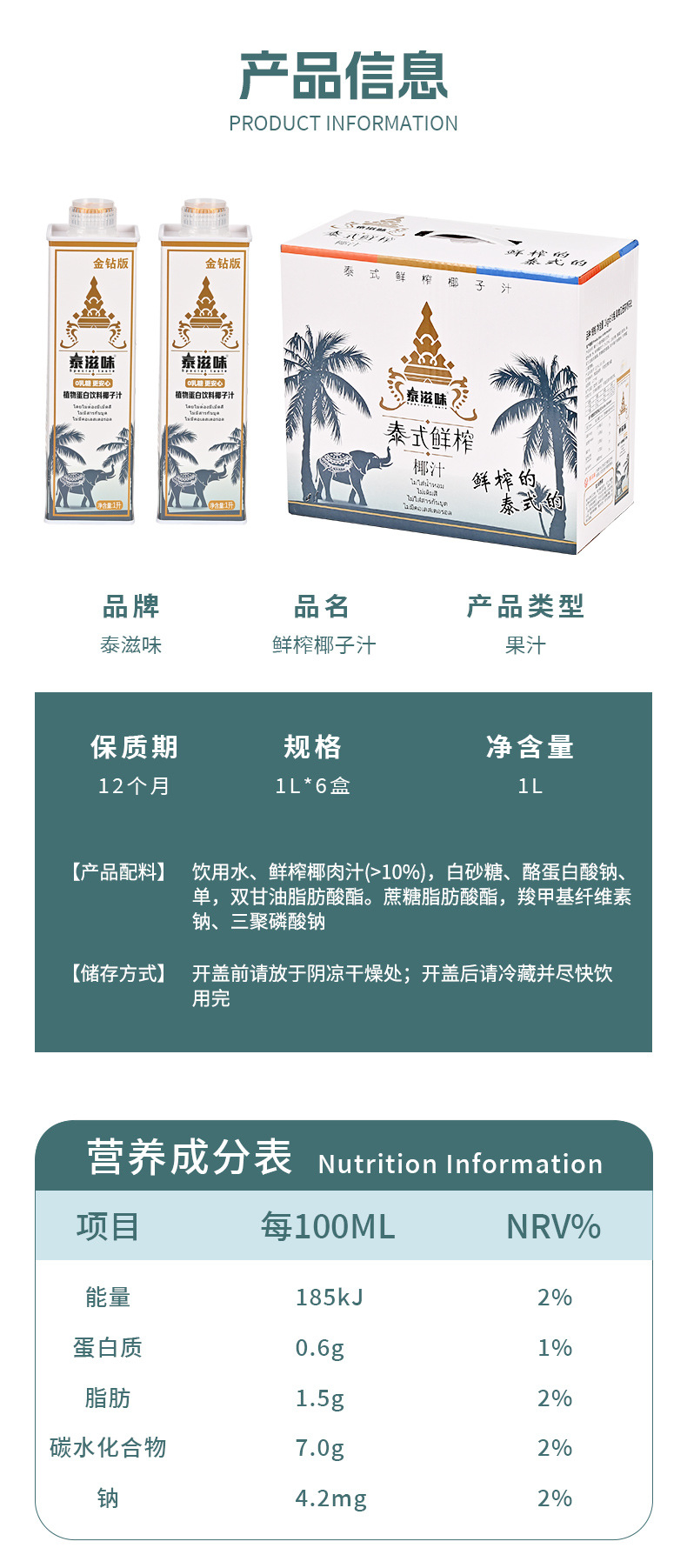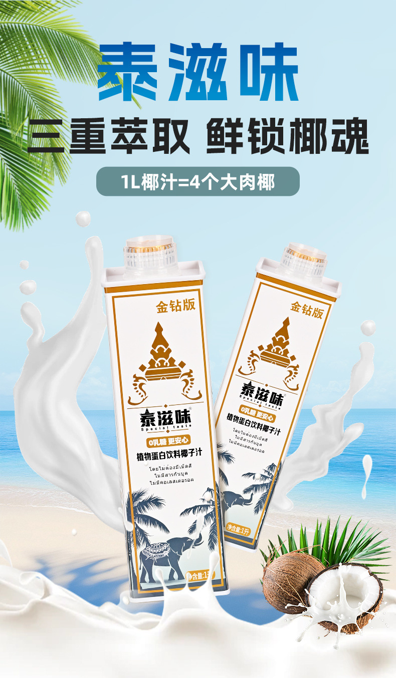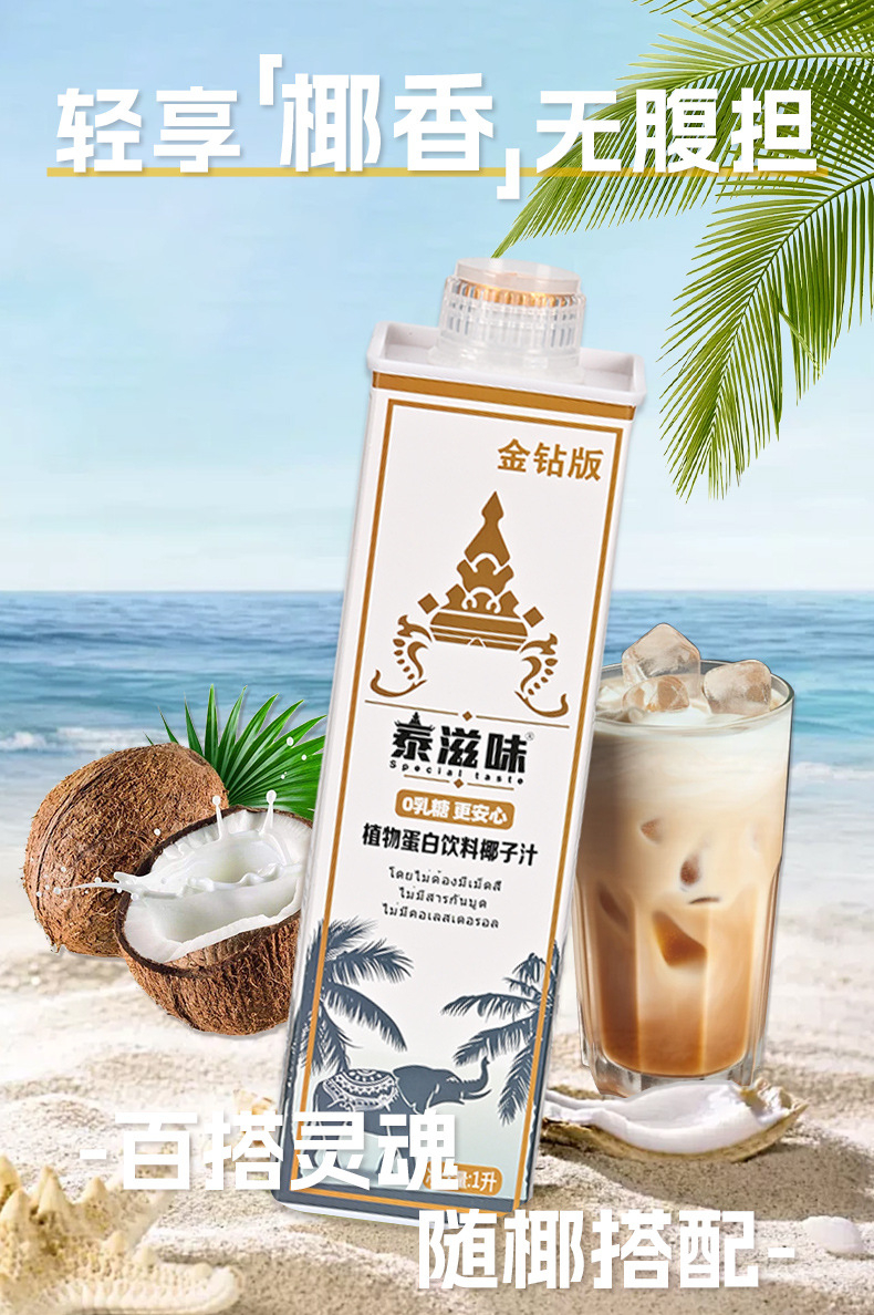 1L泰式鲜榨椰子汁泰国风味网红大瓶饮料整箱植物蛋白饮料代理合作